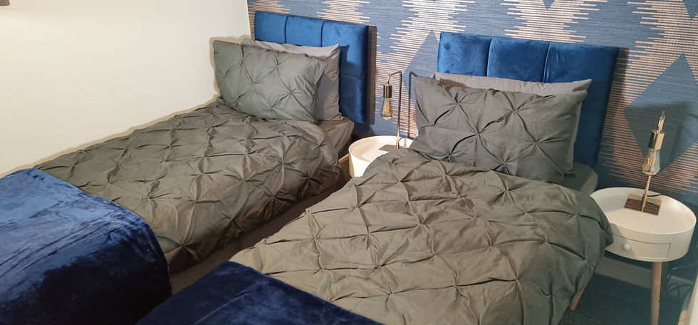 Welcome to Flamingos Nest! Our cosy living kitchen area is the heart of the apartment, providing access to two inviting bedrooms. The first bedroom boasts a comfortable double bed, while the second features a king-size bed that can be converted into twins, making it an ideal choice for families contractors. Additionally, you'll find a generous bathroom equipped with a shower for your comfort and convenience.